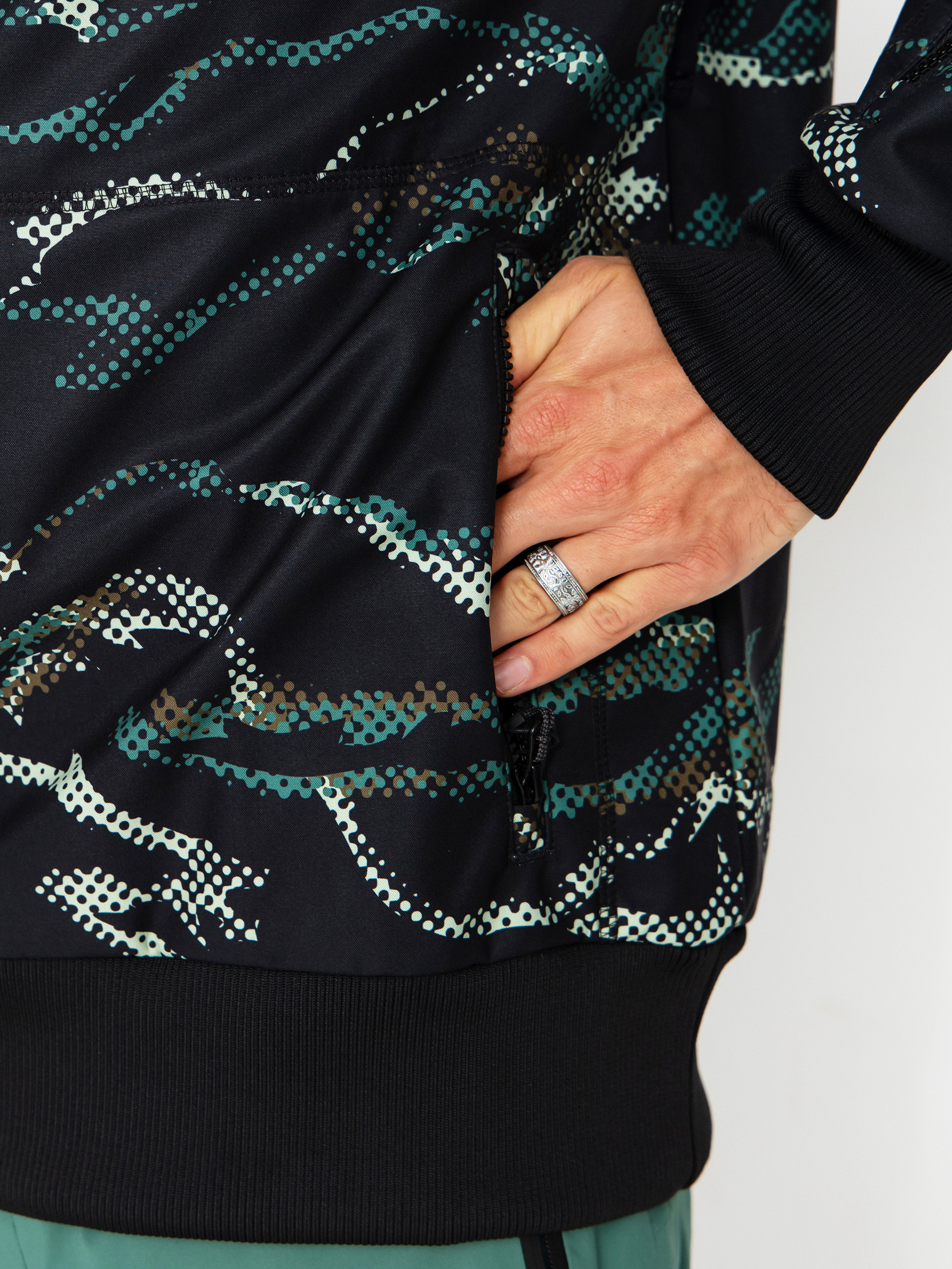 • Das Picture Parker Printed ist ein technisches Softshell-Sweatshirt mit urbanem Flair, ideal für Frühlings-Snowpark-Sessions und Alltagsaktivitäten. Die dreilagige Konstruktion mit Fleecefutter sorgt für Wärmekomfort, während die 5K/5K-Membran und die PFC-freie Teflon EcoElite™ Ausrüstung vor leichter Feuchtigkeit und Wind schützen. Eine verstellbare Kapuze, ein hoher Kragen und elastische Bündchen sorgen für zusätzlichen Komfort, während Belüftungsreißverschlüsse eine schnelle Temperaturregulierung ermöglichen. Es ist eine stilvolle und funktionelle Option für Fahrer, die Freiheit und umweltfreundliche Produktion suchen.