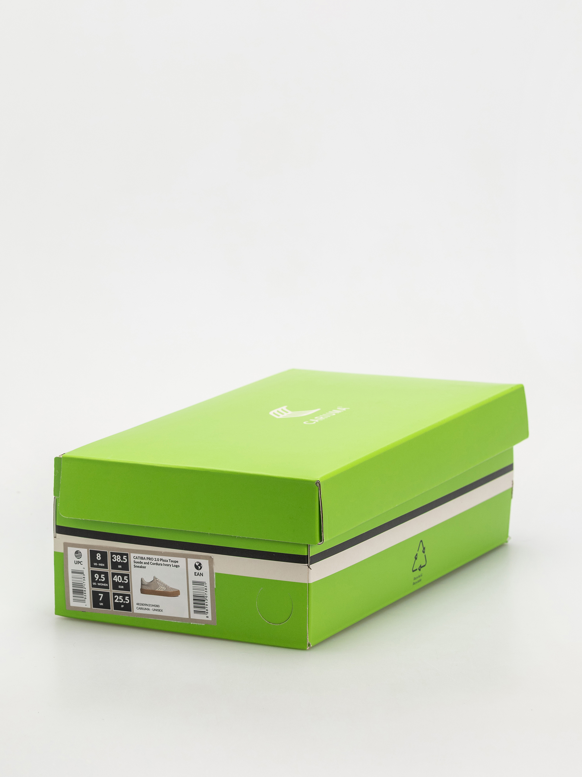 • Schachtel: Die Schachtel und das Papier, das die Schuhe schützt, bestehen zu 100% aus recycelten Materialien.