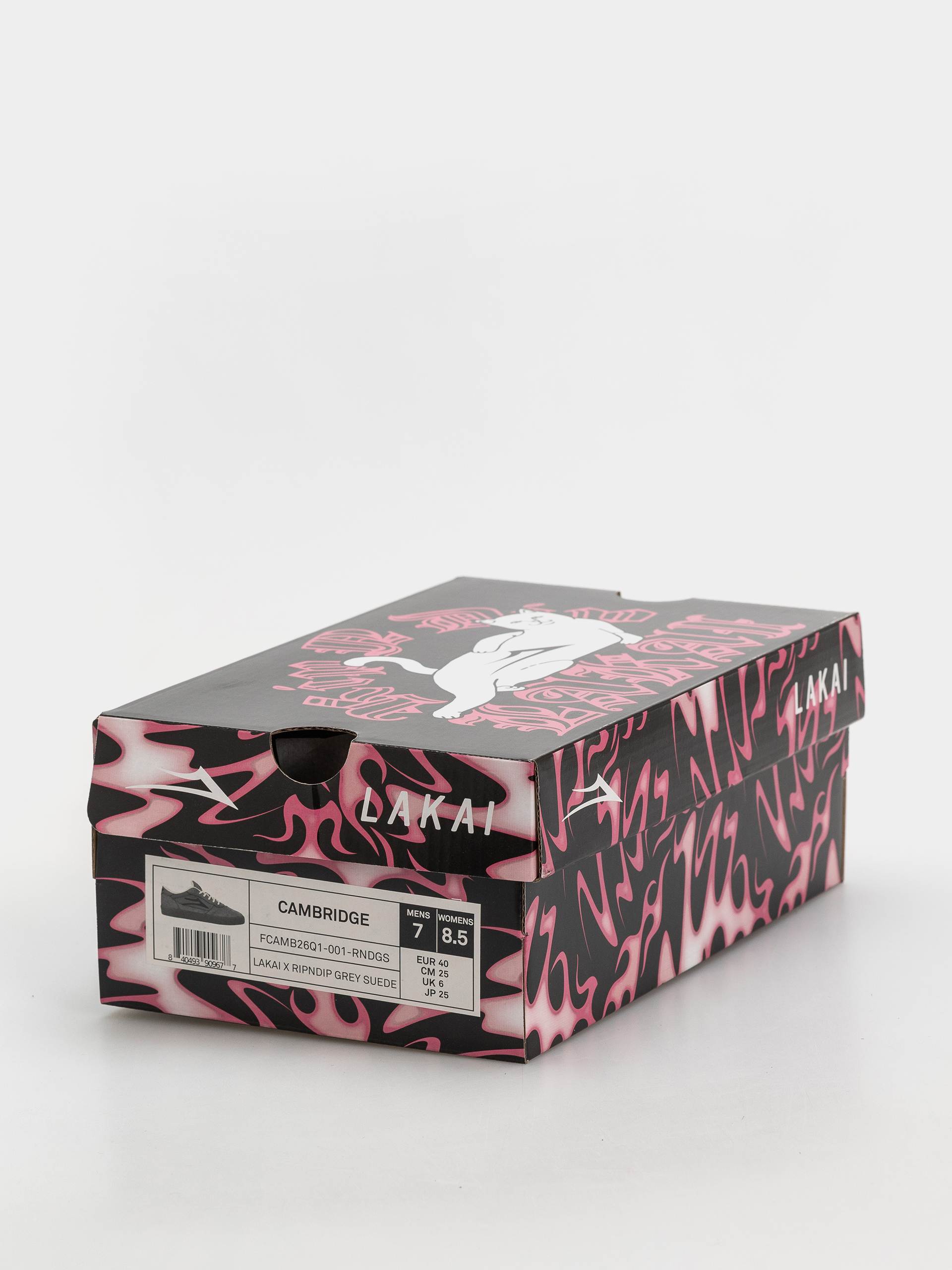 • Der Lakai Cambridge in der Rip’N’Dip Edition ist eine moderne Interpretation eines klassischen Modells, die technischen Skate-Charakter mit einer unverwechselbaren kollaborativen Ästhetik kombiniert. Das Obermaterial aus grauem Wildleder, Mesh und perforiertem Kunstleder bietet Strapazierfähigkeit, Atmungsaktivität und einen sauberen, mehrschichtigen Look. Die vulkanisierte Konstruktion mit PARA-MOUNT™ Außensohle sorgt für ein großartiges Boardgefühl und hohen Grip, während die leichte DELUX-LITE™ Einlegesohle für Dämpfung und Komfort beim Fahren verantwortlich ist.