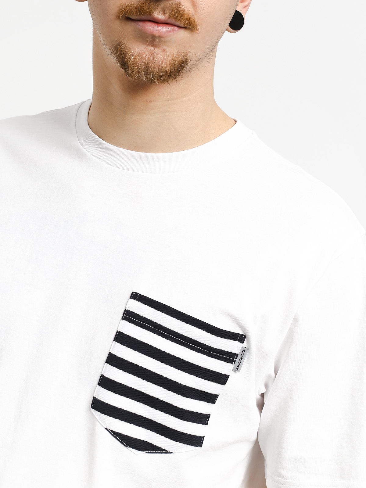 Details - Carhartt WIP Contrast Pocket T-shirt - white (white/barkley stripe dark navy/white)