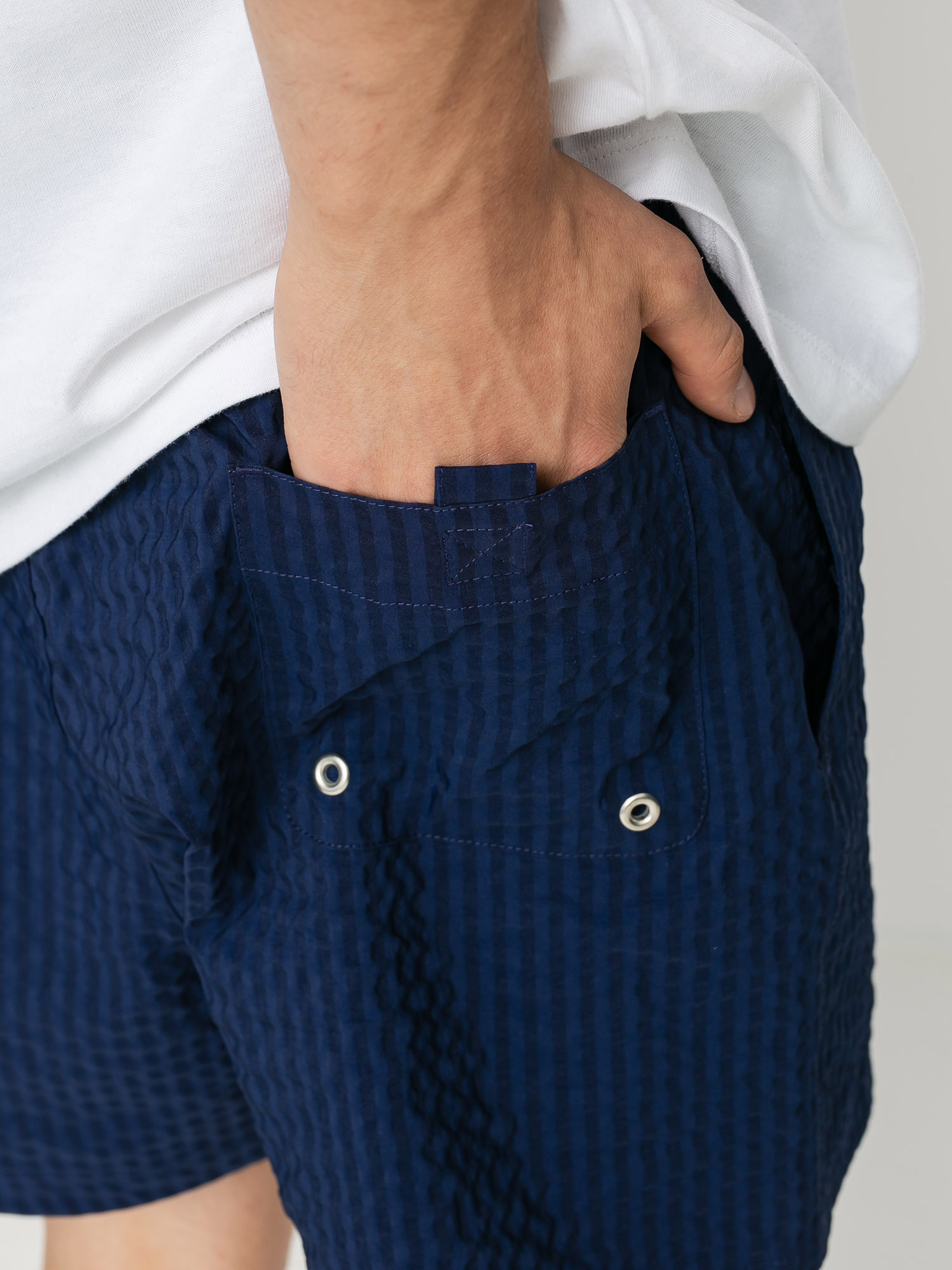 Details - Polar Skate Seersucker Swim Shorts - navy blue (blue)