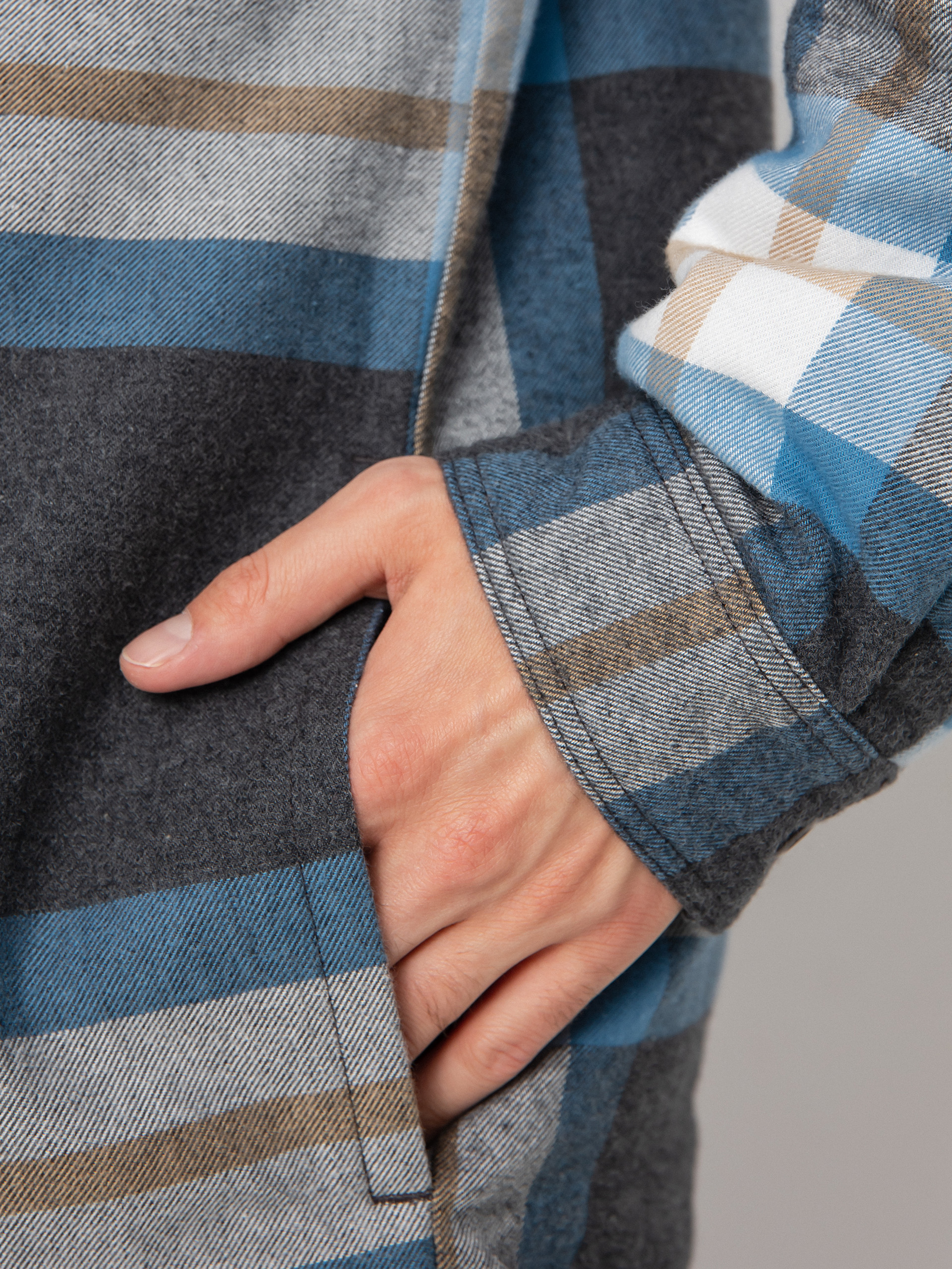 Details - Patagonia Insulated Organic Cotton Fjord Flannel Jacket - blue, black (forestry/ink black)