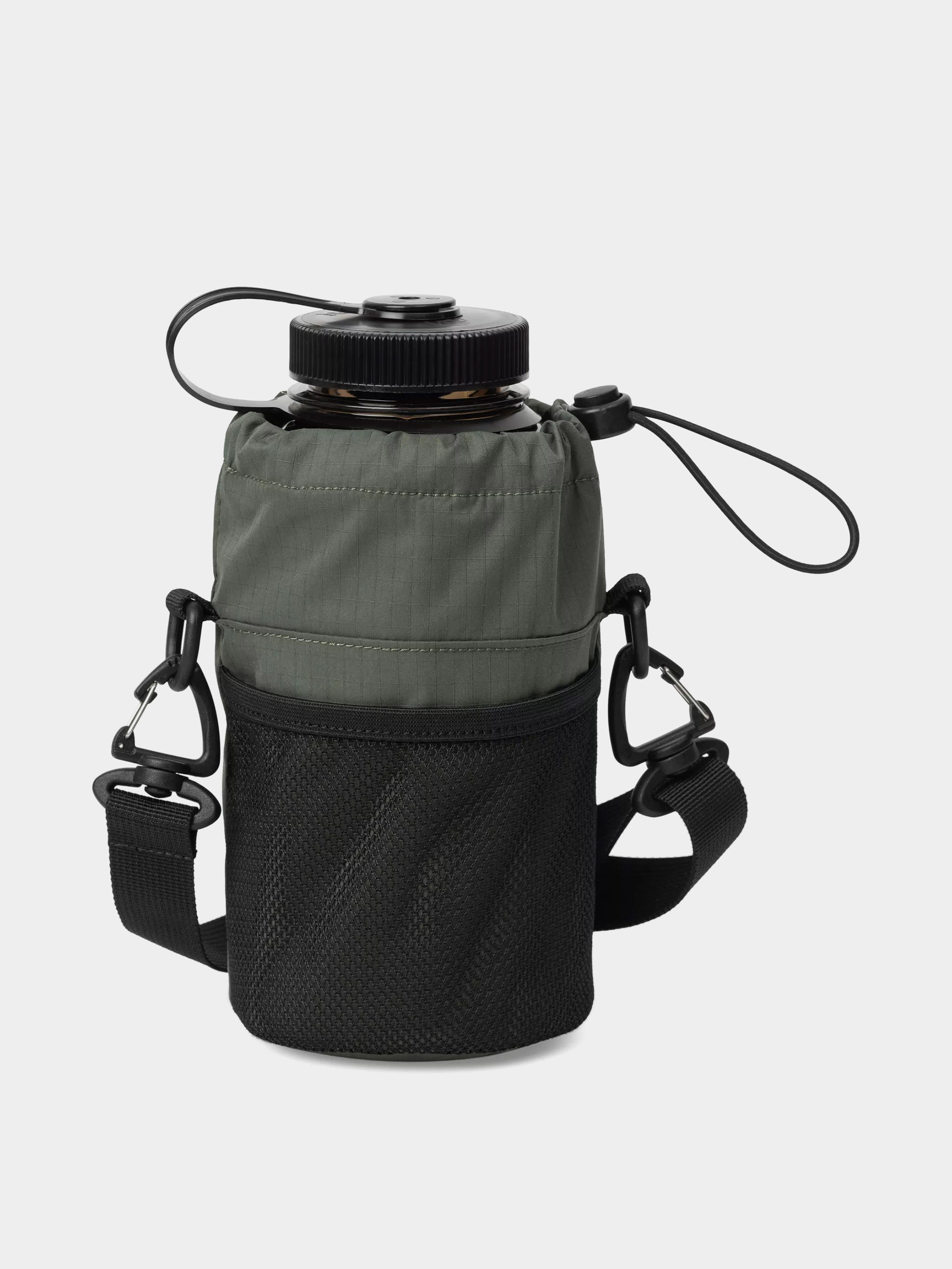 • The practical bottle bag with soft fleece lining is a convenient accessory thatós perfect for everyday use and outdoor activities. Equipped with an elastic drawstring for easy closure, as well as an adjustable and detachable shoulder strap, it provides comfort for carrying in a variety of ways. A mesh pocket is placed on the back, and the whole bag is completed with an embroidered graphic detail for added character. The bag was designed with Nalgene bottles in mind, but it will also work well with others of similar size.