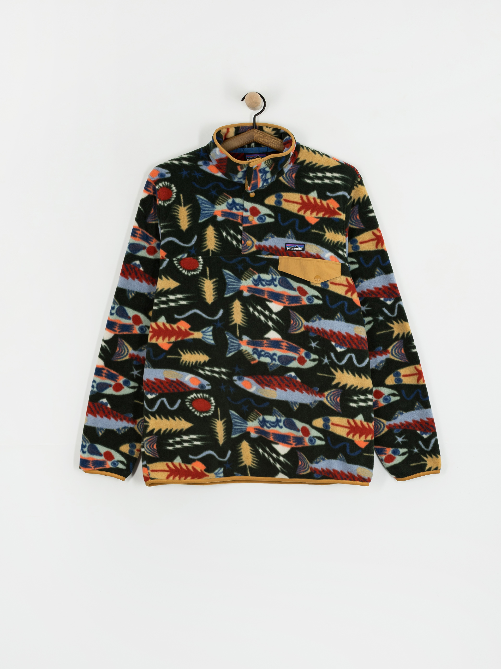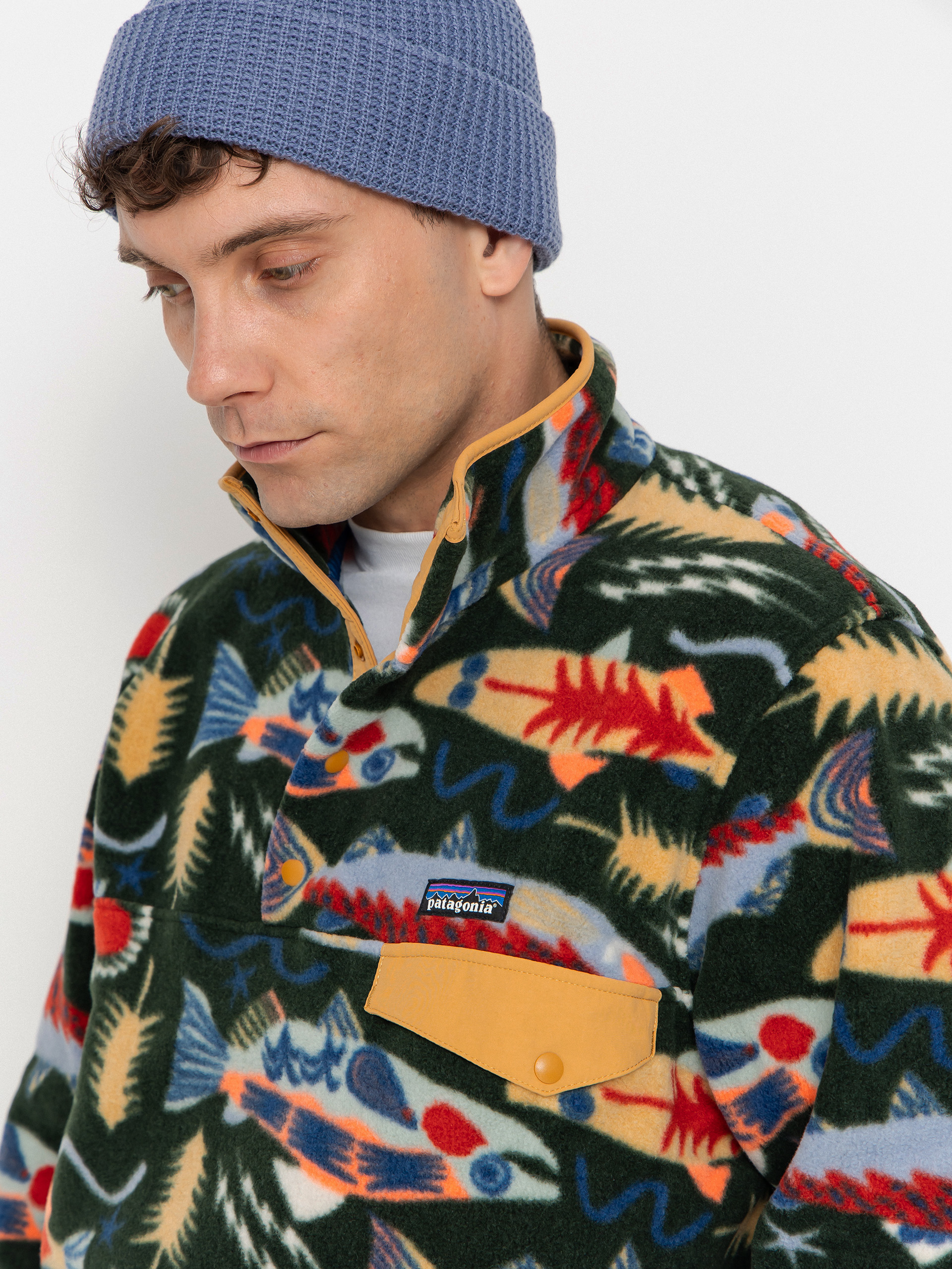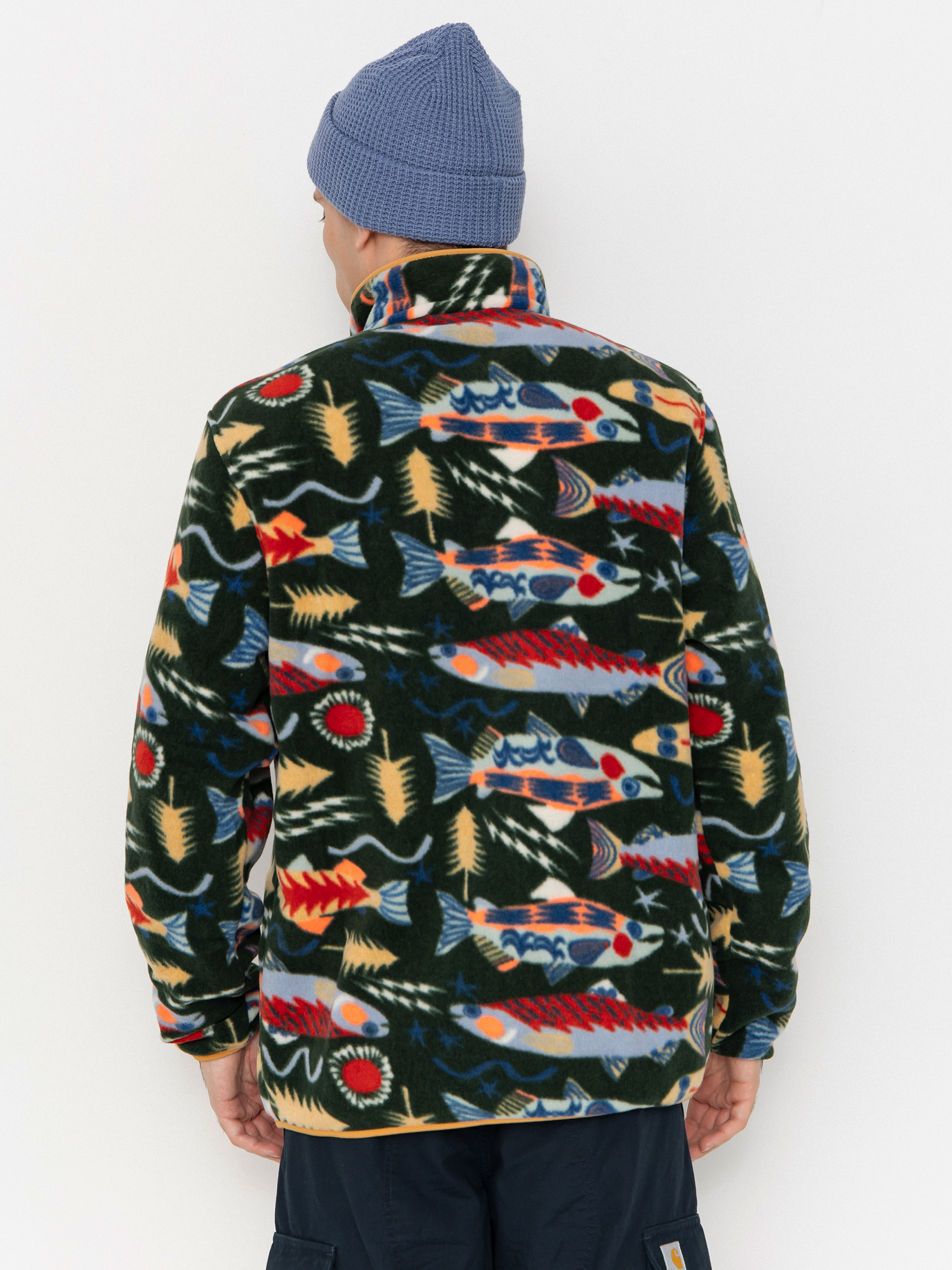 Details - Patagonia Fleece LW Synch Snap T - multicolor (salmon energy old growth green)